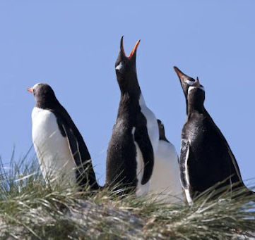 Occasionally visited by King penguins (3–10 may appear among the Gentoos)